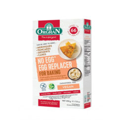 Sustituye la función del huevo en las preparaciones, no contiene lactosa, huevo ni derivados. Se puede utilizaren tortas, tartas, creps, tortillas, galletas y en todas las preparaciones que requieran huevo. Apto para veganos, celiacos, personas con alergias a las proteínas lácteas y a las proteínas del huevo. Libre de soja. El equivalente de 1 huevo es 1 cucharadita. Ingredientes: almidón de papa, harina de Tapioca, carbonato de calcio, ácido cítrico, goma vegetal (estabilizador): Metilcelulosa. Apto para sensibles al gluten no celiacos.